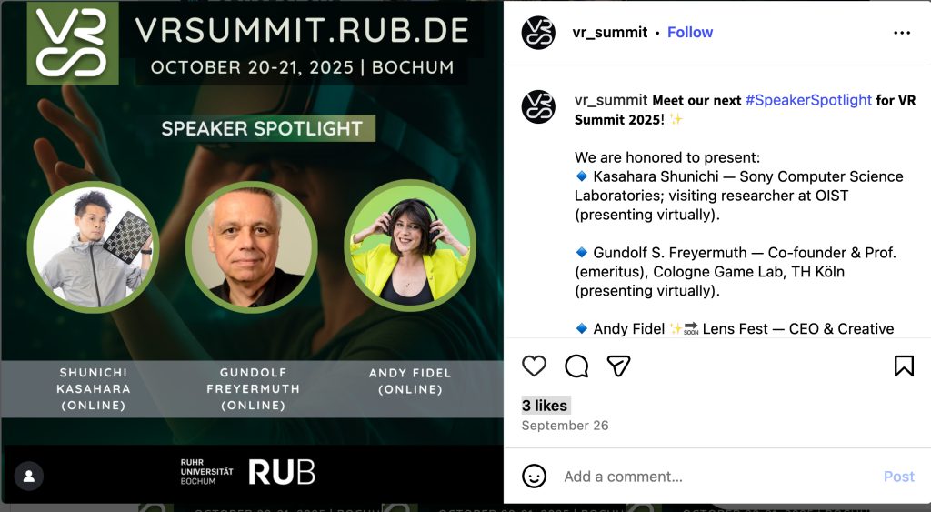Panel The Metaverse Revisited: Hybrid Talk Onsite and in VR (with Michael Barngrover, Michael Wiesing, Sylvia Pan, Christina “Xaos Princess” Kinne), VR Summit Bochum, Ruhr University Bochum, 17 Uhr (online)